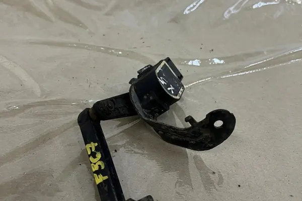 Alavanca do sensor de nível usada para BMW X5 (E70) de 2008. Esta peça é um componente de fabricante de equipamento original (OEM) com o número de peça 6853753. É adequada para veículos de passageiros e vem com uma fatura de IVA. A peça está em boas condições e apresenta o logotipo do fabricante, garantindo sua autenticidade.