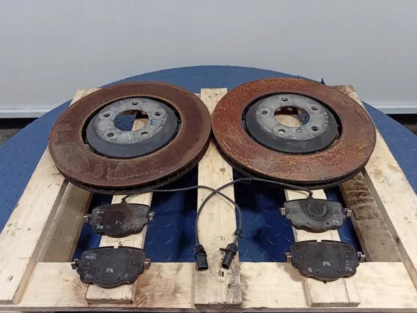 Este anúncio é para um conjunto de discos de freio traseiros. Inclui 2 peças, discos ventilados com diâmetro de 380mm e espessura de 29mm. Sinais de corrosão e desgaste são visíveis nas fotos. Qualidade B.
