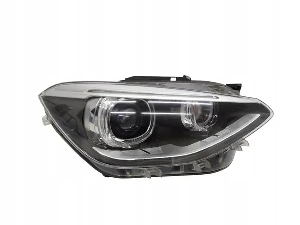 Farol dianteiro direito Bi-Xenon + LED original para BMW Série 1 F20 / F21 2011-2015. O farol está completo, em muito bom estado e não foi reparado. O vidro está intacto, sem buracos, rachaduras ou quebras, e não foi polido. Há pequenos arranhões no vidro devido ao uso normal. A carcaça está intacta, sem buracos, rachaduras ou quebras, e todos os suportes são originais e não danificados. Versão europeia. Número da peça: 7229678.