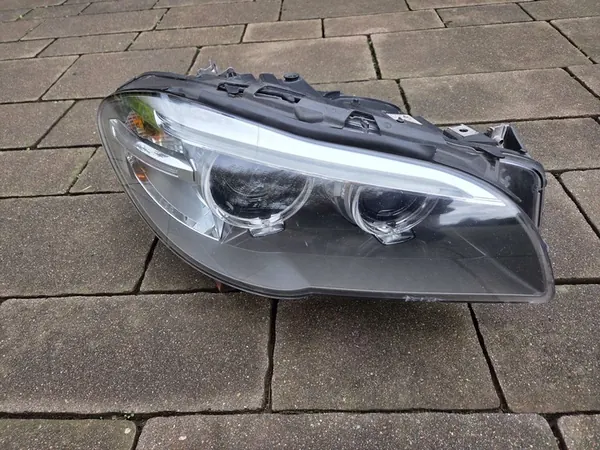Farol dianteiro direito completo com equipamento (falta 1 módulo) Bi-Xenon LED - original para BMW 5 F10 F11 facelift, ano 2015, OEM 7317132-11. Modelos de 2013 a 2017. O vidro está arranhado e há danos visíveis na parte inferior do farol mostrados nas fotos anexadas. Esta é uma versão europeia. O item é vendido como mostrado na foto.