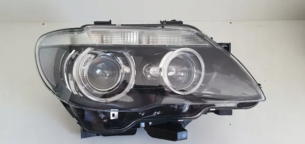 Farol direito para a série 7 da BMW. Tem um pequeno buraco na parte de trás da carcaça, um suporte quebrado e arranhões menores no vidro. Condição: Usado.