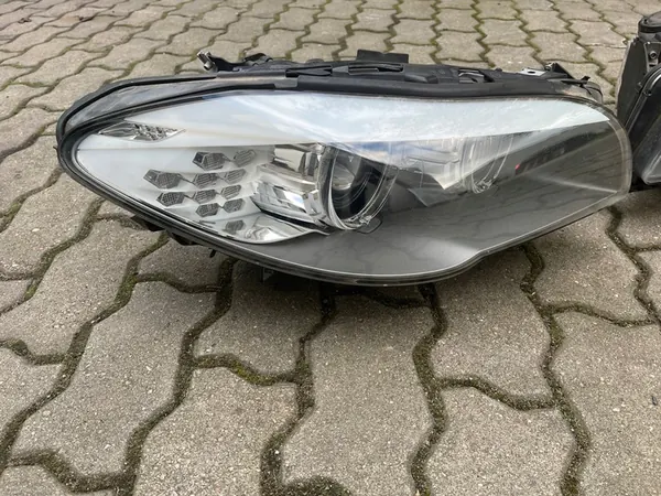 Luz de viragem direita Xenon para BMW F10 antes do facelift, completa com acessórios. Esta peça é usada e é a versão inglesa. Fabricante: Hella.