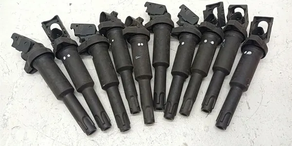 Bobina de ignição usada para modelos BMW E60, E61, E90, E91, E84, E81 com motores 1.6 e 2.0 B. Os números da peça incluem 7548553 e 0221504463. A peça é funcional e nas condições mostradas nas imagens.
