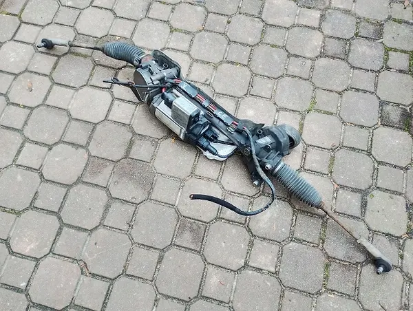 Este anúncio apresenta uma caixa de direção com os números de peça 1K1423051CE e 1K1909144K. É compatível com veículos VW Touran, Golf V, Audi, Seat e Skoda. A peça é usada e está em bom estado de funcionamento.