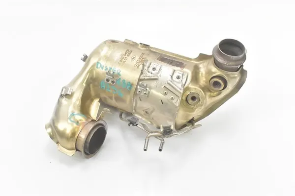 Catalisador para Dacia Duster II, 1.3 Gasolina, modelo 2022. A peça é usada e está ligeiramente amassada, como visível nas imagens. Número OEM: 208A00492R.