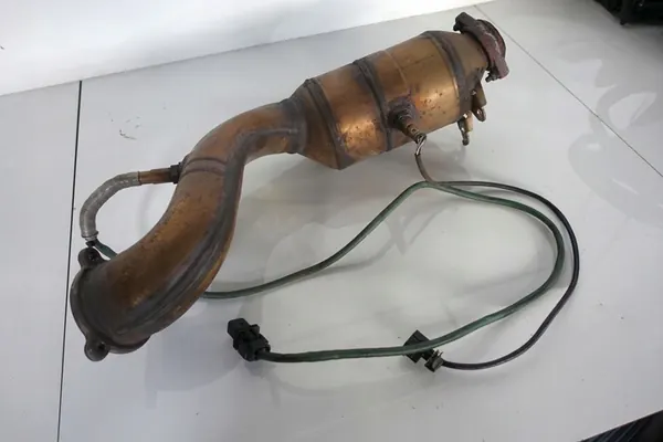 Catalisador com números de peça 2124903136, KT0303 e 2711401308 para Mercedes W204, W207, W212 e SLK R172 1.8 CGI. Dois parafusos estão quebrados, mas o centro está em muito boas condições sem danos.
