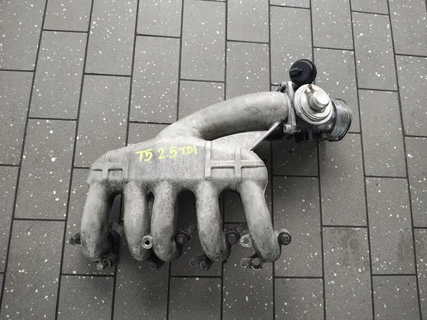 Coletor de admissão original com válvula EGR para veículos VW T5. A peça está em funcionamento, como visível nas imagens. É usada e vem com fatura de IVA.