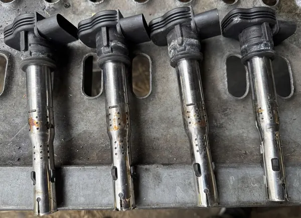 Este é um conjunto de 4 bobinas de ignição de alta tensão para o VW Jetta III (1K2) com motor de 2,5L. A peça é usada e vem com fatura de IVA. É uma peça original do fabricante do veículo (OE) com o número da peça OEM 07K905715D. Adequado para automóveis de passageiros.