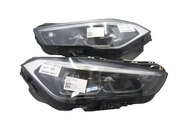 Conjunto completo de faróis LED dianteiros para BMW X1 F48 LCI, versão europeia. O item é usado e inclui faróis esquerdo e direito. Os números de peça OEM são 7472255 e 9477826. As peças são originais com o logotipo do fabricante (OE).