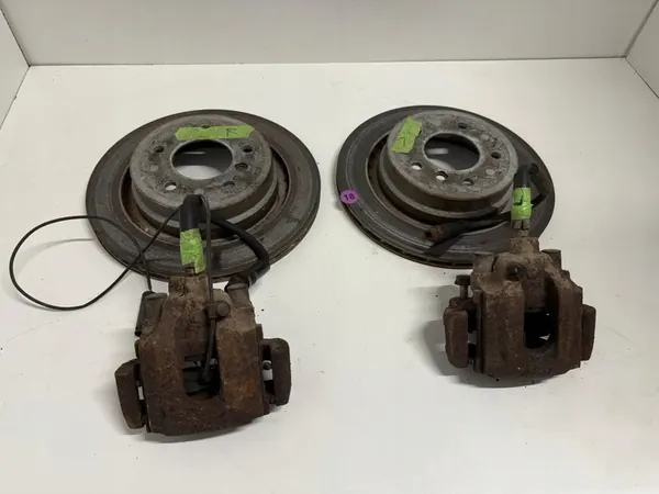 Conjunto completo de freios traseiros para BMW Z3 M. Apresenta grandes calipers M Power e discos de freio 315x28. O estado é como mostrado nas fotos, peça original da BMW com uma quilometragem de 82.000 milhas. Os números de peça OEM incluem 2227515 e 2227516.