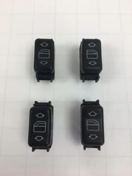 Conjunto completo de quatro interruptores de janela elétrica para Mercedes W124 Sedan, C124 Coupé, S124 Kombi e A124 Cabrio. O conjunto inclui interruptores para as janelas direita, esquerda, traseira e dianteira. Todos os interruptores estão totalmente funcionais. Números OEM: 1248208910, 1248209010, 1248209310, 1248209410.