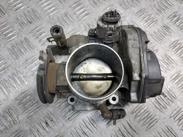 Corpo de aceleração de um Volkswagen Bora I, motor 2.0 8V, com ID: 141780. Esta peça é usada e foi inspecionada visualmente antes do envio. Apresenta sinais de uso, visíveis nas imagens fornecidas. O número da peça é 06A133066E. Este componente é uma peça original com o logotipo do fabricante (OE) e é adequado para automóveis de passageiros com motor a gasolina. O item vem com uma fatura de IVA e está embalado em uma embalagem de substituição.