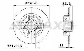 Disco de freio Braxis AD0003 com pastilhas TRW GDB1330. Diâmetro do disco: 273,8 mm, altura: 82,2 mm, espessura: 11 mm, número de furos: 4, diâmetro do furo do parafuso: 61,9 mm. Informações adicionais: rolamento de roda integrado. Referência OEM: 7701208230 para RENAULT. Especificações das pastilhas de freio: Fabricante: TRW, Índice: GDB1330, altura: 52,9 mm, espessura: 17 mm, localização de instalação: traseira, sistema de freio: TRW. Nenhum contato de desgaste preparado, sem contato de aviso de desgaste. Número WVA: 20960; 20961, marca de aprovação: E9 90R - 01120/457. Produto usado que pode mostrar sinais de manuseio. A embalagem original pode estar danificada.