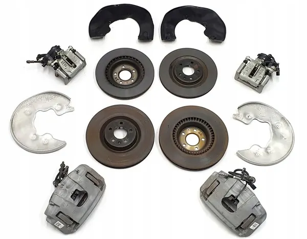 Conjunto de discos e calipers de freio para Audi A6 C7 e A7 Lift 3.0 TDI de um veículo com 279 km. O conjunto inclui: