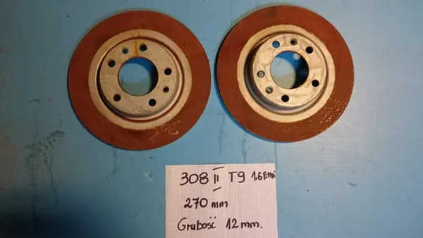 Discos de freio traseiros usados para Peugeot 308 II T9 E-HDI. O item está descrito no título. Todas as peças são originais de desmontagem. As fotos mostram a condição real do produto.