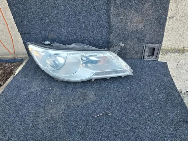 Conjunto completo de faróis dianteiros com lâmpadas para o lado direito do VW Tiguan 2008-2011. Condição muito boa, não reparado, versão europeia. Inclui ambos os lados, esquerdo e direito. Luzes de cruzamento tradicionais/halógenas. Adequado para automóveis de passageiros. Peso com embalagem de 10 kg.