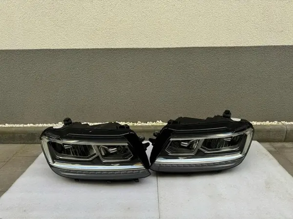 Faróis Full LED usados para VW Tiguan II pré-facelift (2015-2016). Os faróis estão em boas condições sem danos e não incluem equipamentos adicionais. São adequados para veículos 4x4/SUV. Os números de peça OEM são 5NB941773B e 5NB941036B.