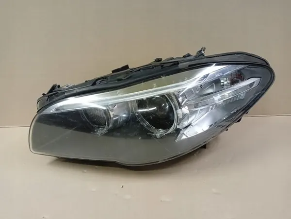 Farol bi-xenon esquerdo para BMW 5 Série F10 F11 LCI 13-. Condição usada conforme mostrado nas imagens. Há arranhões no vidro visíveis na segunda imagem.