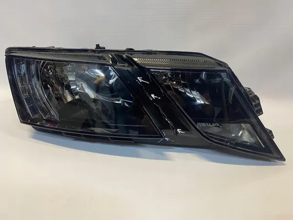 Farol dianteiro direito para Skoda Octavia III Lift, modelo 2016. Condição conforme mostrado nas fotos, por favor, revise-as cuidadosamente. As montagens e a carcaça estão intactas. A lente foi reparada (todas as reparações marcadas com marcador branco) e falta a guia central. Esta é uma versão europeia.