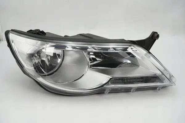 Farol direito para Volkswagen Tiguan, número da peça 5N1941032AB. O item é usado e vem de desmontagem. A condição visual é como mostrada nas fotos. Esta é uma versão europeia. A peça é original com o logotipo do fabricante (OE).