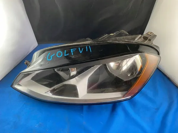 Farol esquerdo usado para Volkswagen Golf VII, número da peça 5GM941005. Este componente é proveniente de desmontagem e é adequado para veículos de passageiros. A peça está em estado usado e pode ser emitida fatura de IVA.