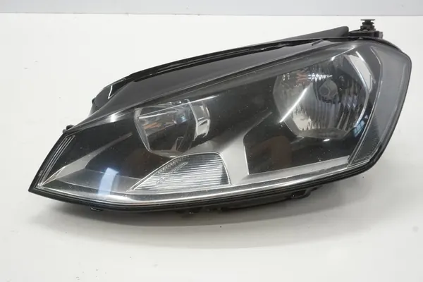 Farol esquerdo para VW Golf VII 5D HB, versão do Reino Unido. Este farol é usado e não inclui lâmpadas. Possui luzes de cruzamento tradicionais/halógenas. A peça é fabricada pela Volkswagen OE e é adequada para automóveis de passageiros. Peso com embalagem é de 5 kg. Fatura disponível.