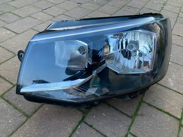 Farol esquerdo para VW T6 2015, tipo halógeno, totalmente funcional e em excelente estado. O vidro não está arranhado e parece muito bonito. A peça é usada, mas parece nova.