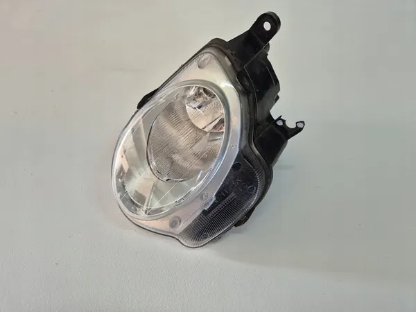 Farol halógeno esquerdo para Fiat 500 (2007-2015). Número da peça: 45530711. Condição: usado com um suporte danificado e desgaste leve.