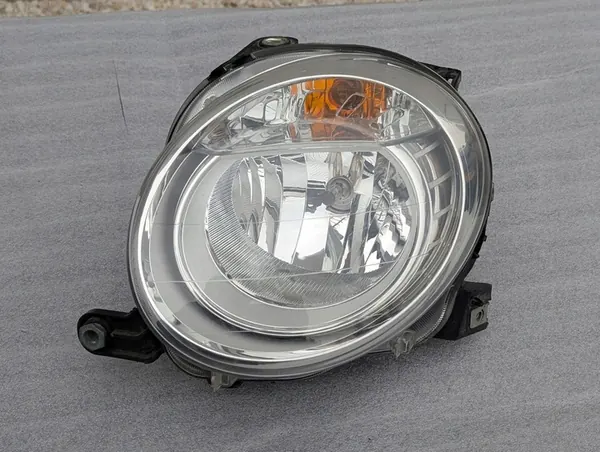 Farol frontal esquerdo FIAT 500 51787492 em estado usado conforme mostrado na foto. Um suporte está colado. Esta peça é universal e adequada para automóveis de passageiros. O número da peça OEM é 51787492 da Fiat OE.