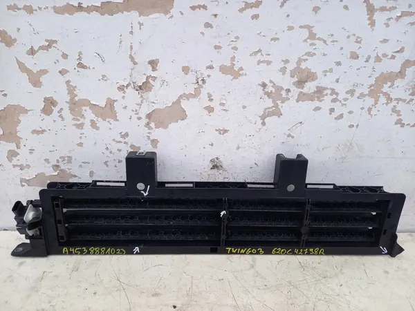 Grade de entrada de ar usada para Renault Twingo III Smart A453. Danos visíveis conforme mostrado nas fotos. Número da peça OEM: A4538881023. Esta peça é adequada para automóveis de passageiros e fabricada pela Renault OE. Fatura disponível para IVA.