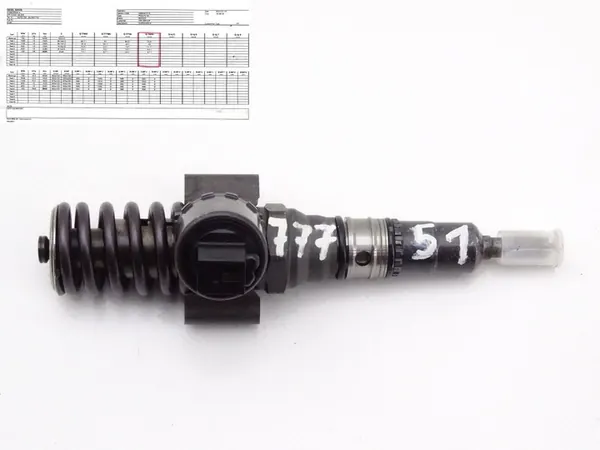 Injetores de combustível usados testados com uma impressão. O injetor foi testado usando um testador de injetores Nova Ditex. Número da peça: Bosch 0986441516, 03G130073GX. Número de série: 77751. Compatível com veículos VW, Audi, Skoda e Seat com motores 2.0 TDI. Códigos de motor compatíveis: BKD (103KW) e AZV (100KW). O injetor está em condições de funcionamento.