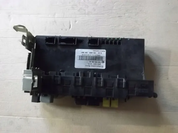Módulo SAM original com fusíveis e conectores para Mercedes-Benz Classe C W203. Número da peça: 2035451801, 5DK00848640. Condição conforme mostrado na foto.
