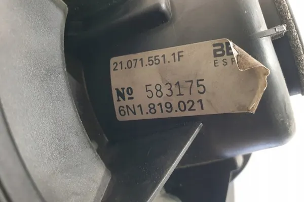Motor de aquecimento usado para SEAT IBIZA II (6K1), motor a gasolina 1.4L, 44kW, fabricado em 1999. Esta peça é um componente de fabricante de equipamento original (OEM) com o número da peça 6N1819021. Está em boas condições e é fornecida com fatura de IVA. A peça é certificada como original com o logo do fabricante.