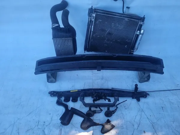 Conjunto completo de radiador com intercooler para Nissan Juke I 1.6 DIG-T. O código de cor é desconhecido e não avaliamos o estado da pintura. Cada peça deve ser renovada por um pintor. As fotos mostram o item à venda. Também há a opção de retirar o item comprado em nossa empresa ou no mercado de carros em Poznań às quintas e domingos.