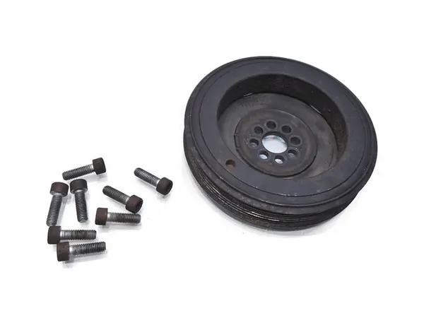 Polia do virabrequim para Audi A6 C6 3.2 FSI, condição usada como mostrado nas fotos. Peça original #53371 - H2 RE7P 3/1 L. Removida de um Audi A6 C6 3.2 FSI Quattro Avant de 2007, produzido de 2004 a 2014, com um facelift em 2006. Especificações do motor: 3.2 FSI, 255 CV (188 kW), código do motor AUK. Transmissão manual de 6 velocidades, código da transmissão GMV. Tipo de carroceria: perua. Recursos incluem ar condicionado, janelas elétricas (4), espelhos elétricos (2) e uma quilometragem de 260.000 quilômetros. Recursos adicionais: volante multifuncional, fechaduras elétricas das portas traseiras, ISOFIX para os assentos traseiros e dianteiros, assentos aquecidos, suporte lombar elétrico, luzes traseiras LED, faróis de xenônio, lavadores de para-choque dianteiro, travamento central, engate traseiro dobrável, freio de mão elétrico e controle de cruzeiro. Número da peça OEM: 06E105251C.