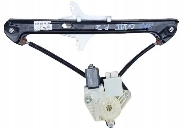 Regulador de janela traseira direita usado de um Volkswagen Golf VII 7 5G4. Esta peça é proveniente de veículos desmontados e não é uma peça de serviço. Pode apresentar sinais de uso, incluindo arranhões devido à manipulação e armazenamento, e pode precisar de pintura. As fotos mostram a peça real em nosso estoque, mas arranhões adicionais podem estar presentes devido às condições de armazenamento.