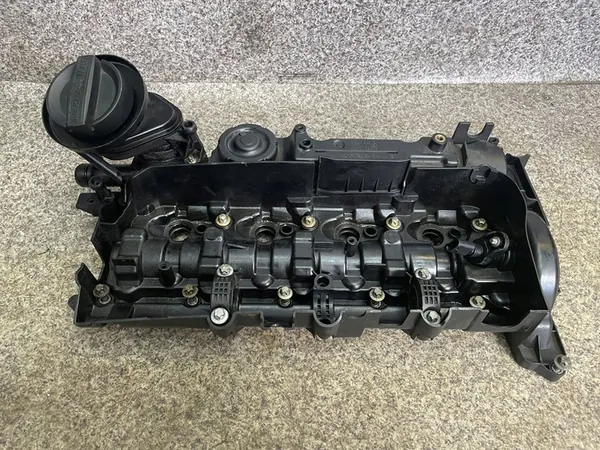 Tampa de válvula original do BMW F11 2.0 D 520d, 184 CV, modelo 2011 com transmissão automática. Completa com enchimento de óleo, sensor e parafusos conforme mostrado nas fotos. A tampa está em muito bom estado, totalmente funcional, verificada e sem rachaduras, pronta para instalação imediata. Números de peça: 7810584, 77567777, 7803093. Uma ampla seleção de peças para este modelo está disponível. Envio diário de segunda a sexta-feira.