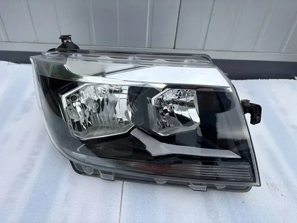 Farol direito original para VW CRAFTER II 7C1, número da peça 7C1941006. Este farol está em boas condições, sem defeitos ou reparos. Todos os suportes estão intactos e não danificados. Possui luzes de cruzamento halógenas tradicionais e ajuste de altura elétrico. É uma versão europeia, adequada para veículos de passageiros. A condição é visível nas fotos anexadas.