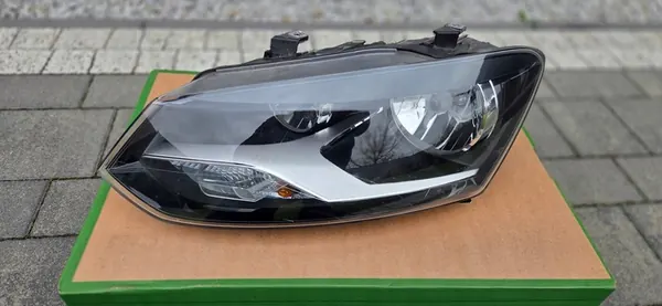 Farol esquerdo para VW Polo V 6R 09- versão europeia. O farol está em bom estado com um suporte reparado, conforme mostrado na foto 4. O item está localizado na posição 111 no mercado de Poznań.