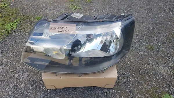 Farol direito VW T5 7E1 LIFT usado, OEM 7E1941015D. A condição é visível nas fotos. O farol está danificado e destinado apenas para reparo ou peças. Não são aceitas devoluções. Por favor, considere sua compra cuidadosamente.