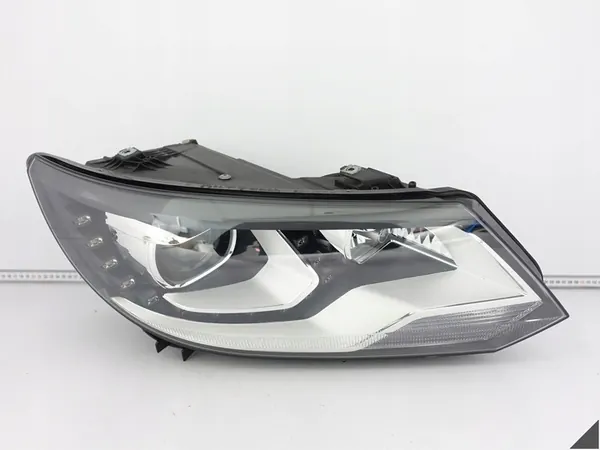 Farol direito usado para VW Tiguan 5N1 Lift (2011-2016) com luzes xenon e LED. Existem pequenos arranhões no vidro. Verifique o número da peça para compatibilidade e evite problemas. Revise todas as imagens para possíveis defeitos. Não confie apenas nas informações 'Serve para veículos', pois a compatibilidade precisa pode ser difícil. Em caso de dúvidas, entre em contato com um revendedor autorizado.