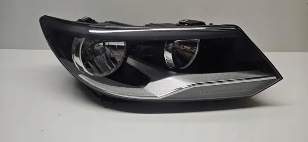 Farol direito completo para VW Tiguan 5N1 Lift. Número da peça: 5N1941006C. Tipo halógeno com vidro sem danos. Versão europeia em excelente estado, com um suporte reparado visível na foto 6.