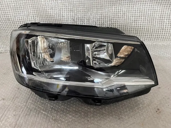 Farol frontal direito original usado para VW TRANSPORTER T6 15-. Versão europeia, lado direito, com suporte quebrado. A peça está em condição usada e vem com fatura VAT. O número da peça OEM é 7E1941006E.